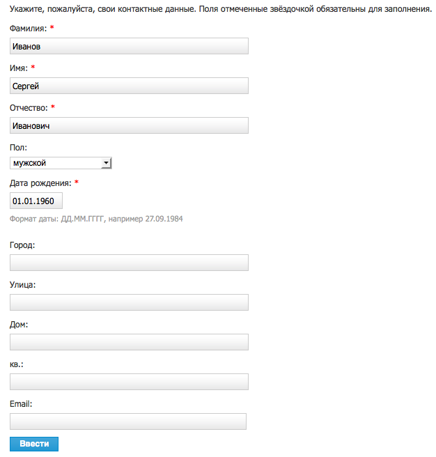 5. В отобразившейся форме заполните данные о себе. Поля, отмеченные звёздочкой, обязательны для заполнения.